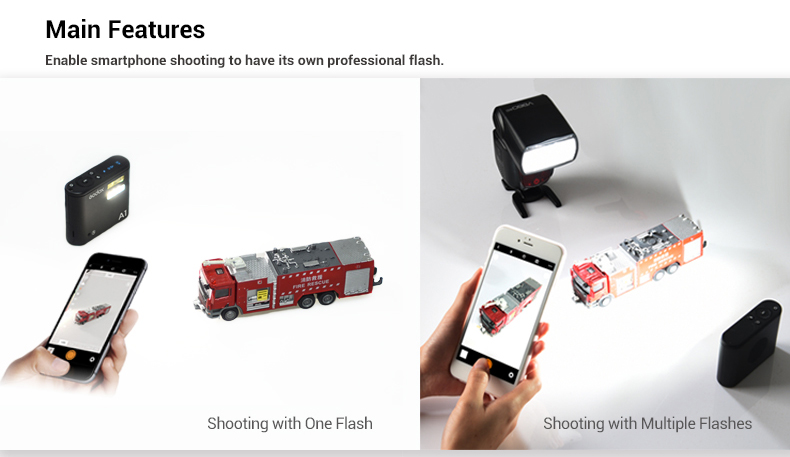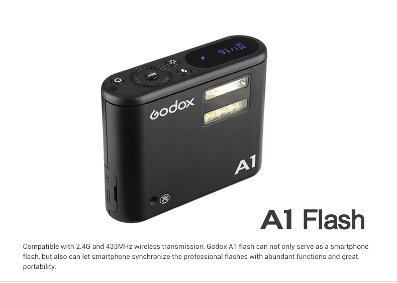 Вспышка Godox A1 — это устройство для смартфонов совмещающее в себе сразу несколько функций: вспышка, синхронизатор и LED-подсветка, все в одном компактном корпусе.