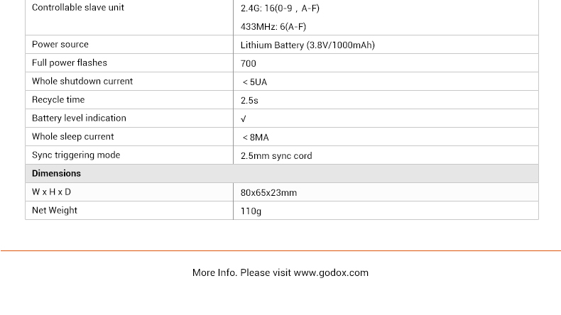 Совместимость с радиопередатчиками | Godox X1T-C, Godox X1T-N, Godox X1T-S, Godox X1T-F, Godox X1T-O |